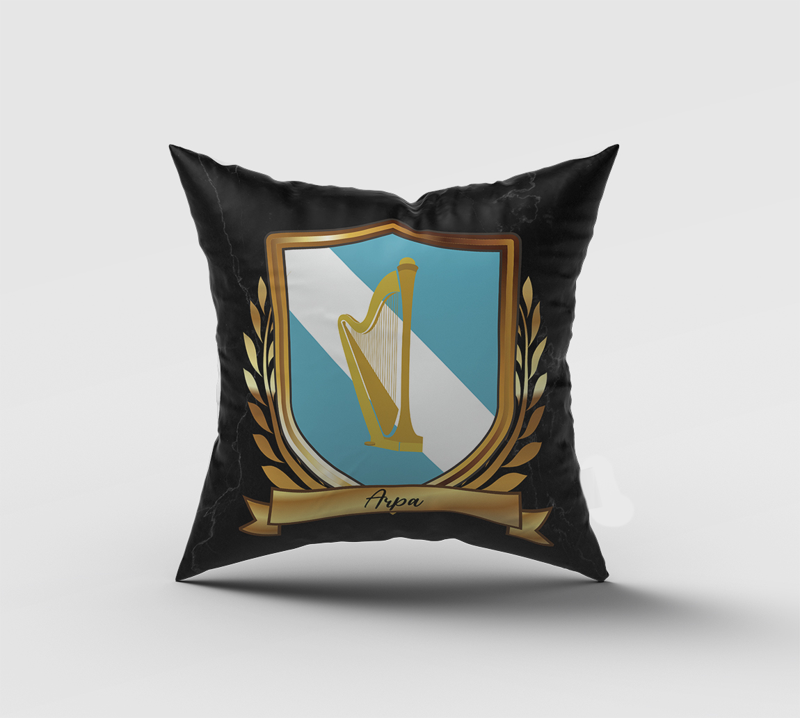 A custom-made cushion -available in 40x40cm cushsion, with or without filling, in edge-to-edge printed polyester and with Velcro closing mechanism. These cushions are ideal for indoor decoration. Available for all surnames (if you don’t find your surname we will gladly design a cushion with your surname shield at no additional cost). All cushionss are custom made and manufactured in monthly batches, therefore lead times may vary from 2-5 weeks.