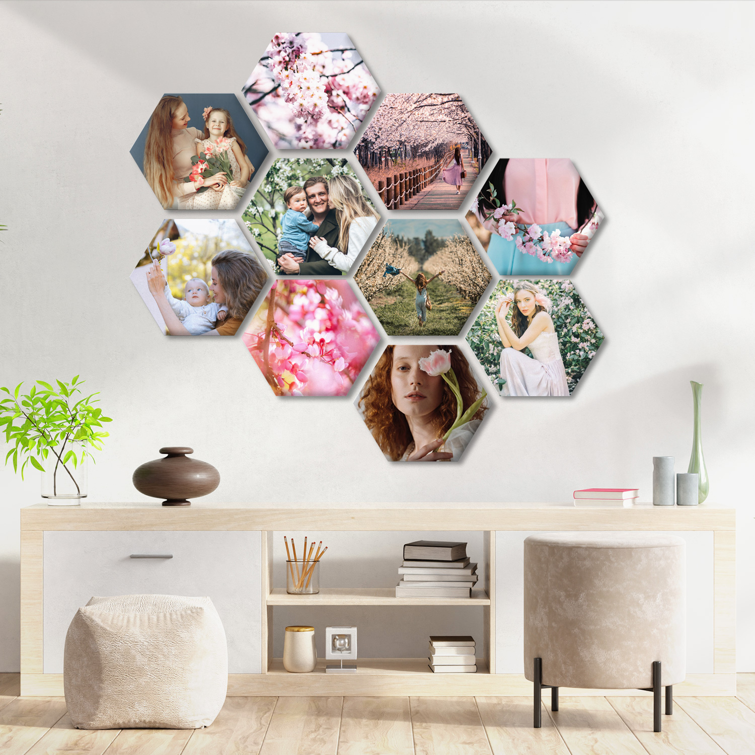 10 hexagonal canvas prints 40x35cm