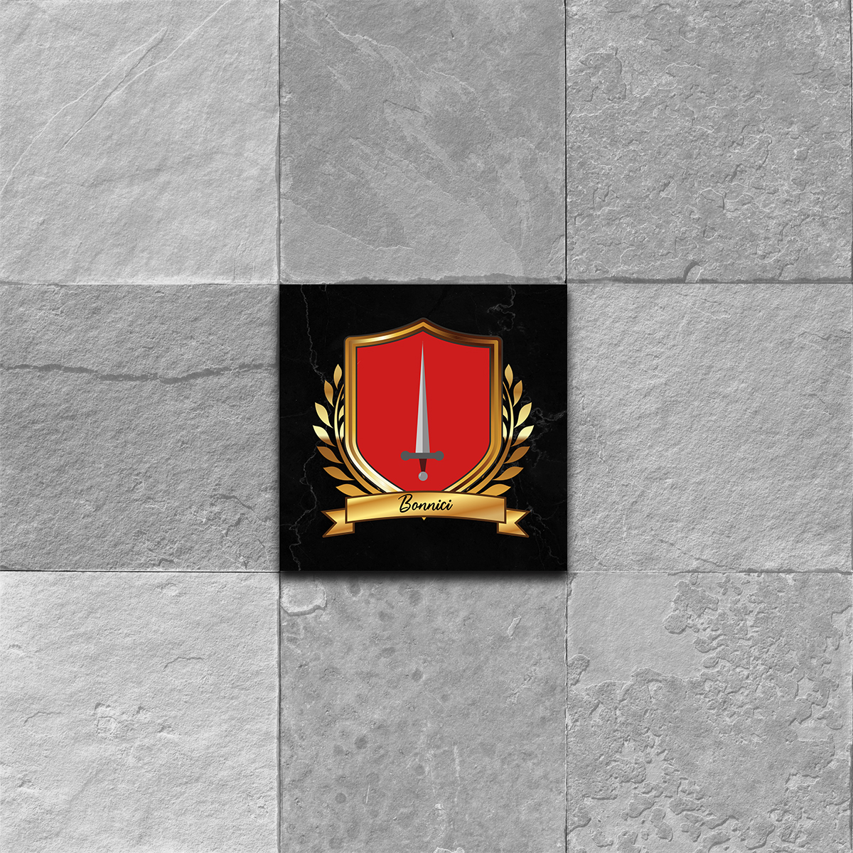A wonderful reproduction of your surname coat of arms printed on a glazed ceramic tile, 15x15cm – definitely a welcome addition to your home decor. Althouth weather proof – these tiles are intended for indoor use – as colours might fade quickly if used outdoors.
