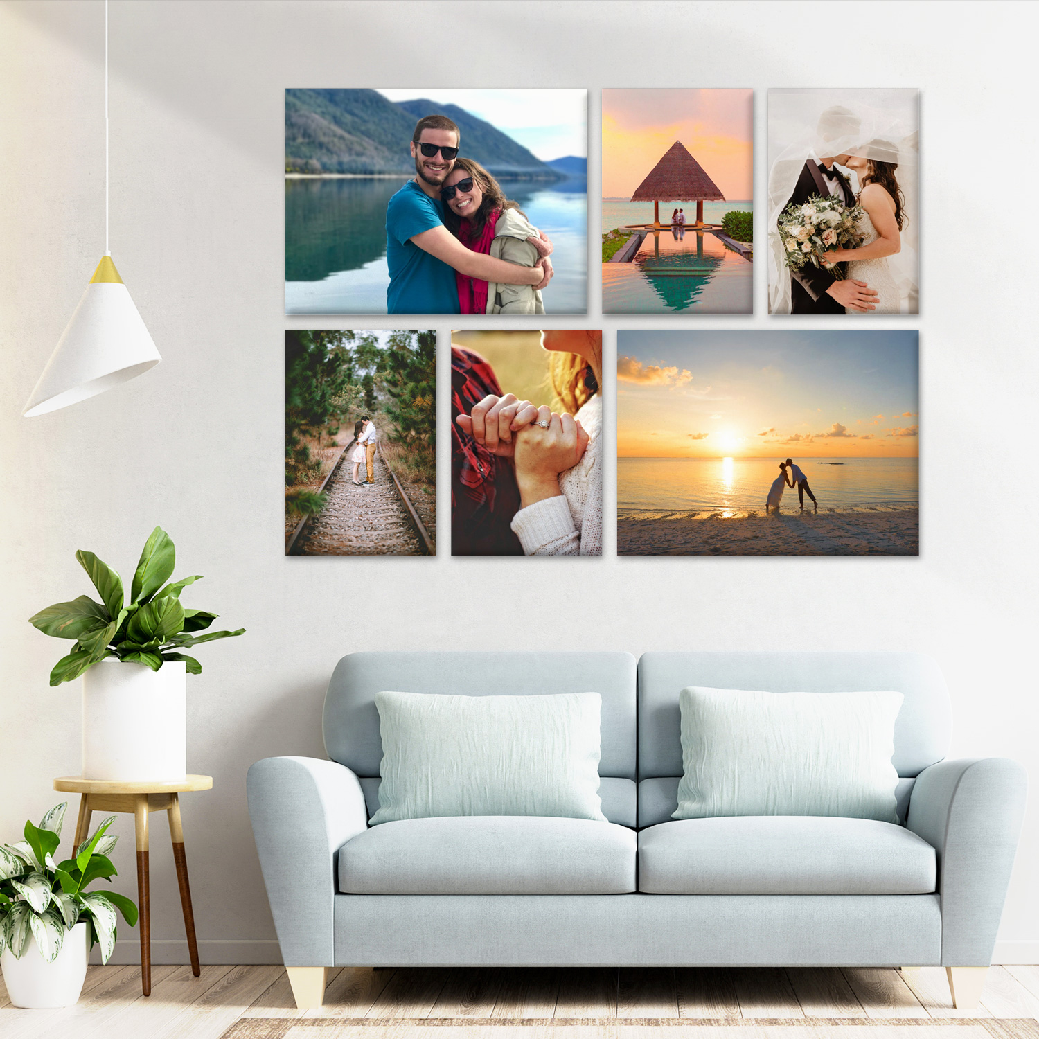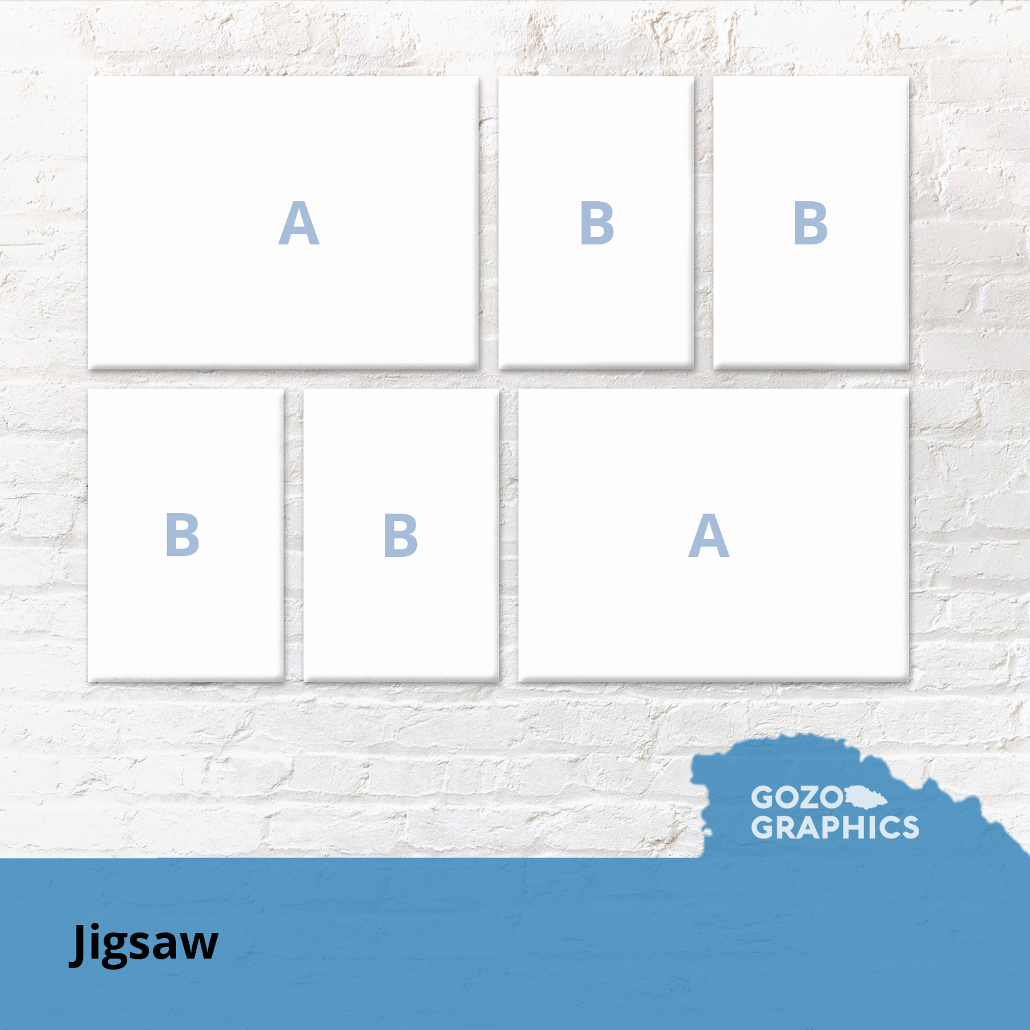 Jigsaw composition consisting of 6 pieces. All prices are printed in HP Latex Inks, stretched on a 2cm deep wooden frame and can be purchased with or without lamination. Just insert your image and we’ll do the rest.