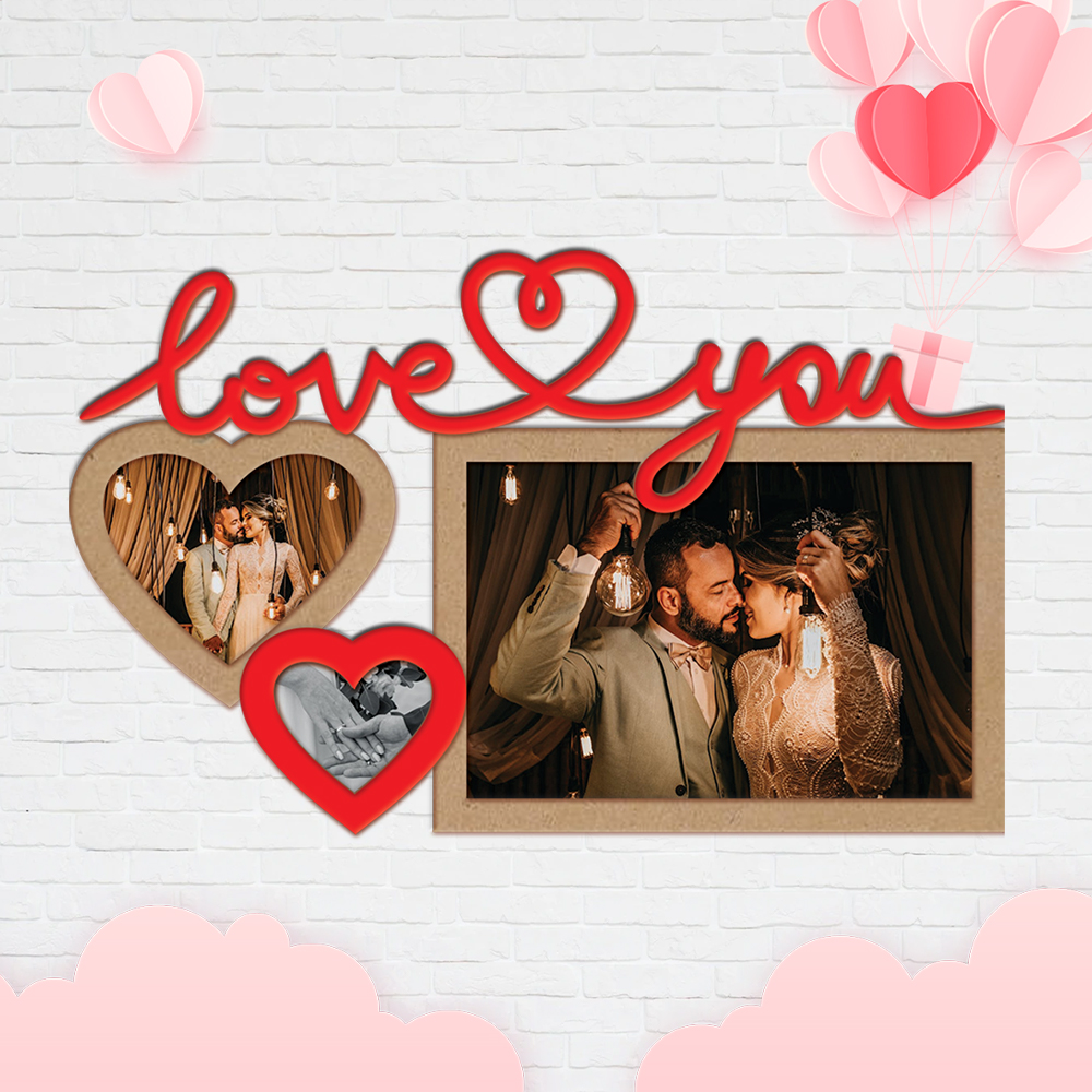 Custom printed Family Tree wooden frame, measuring 38x23cm, and made out of 4mm MDF. Love you text and heart are an extra layer of red painted 4mm MDF – adding a stunning embossed visual effect. Upload the photos below according to the positioning you want them printed.