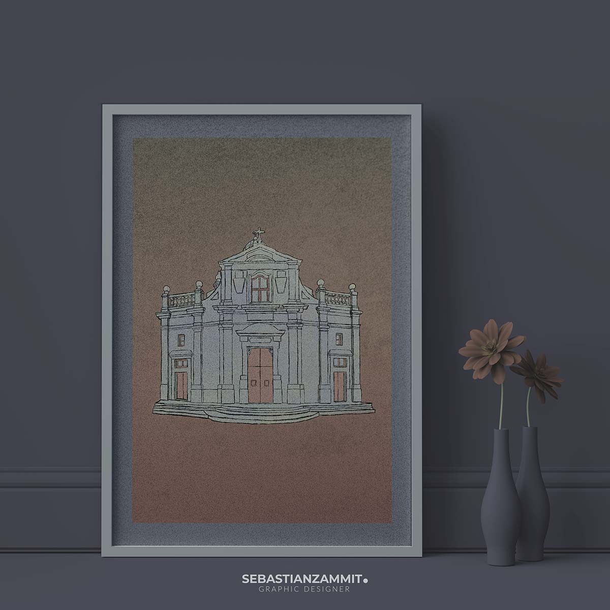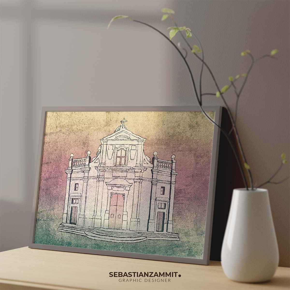 An original artist reproduction of iconic Maltese churches, chapels and buildings – created by the young talented artist – Sebastian Zammit. Available in canvas prints, photo print on Hahnemuhle Photo Lustre Photo Paper 260gsm and Framed Photo prints (on Hahnemühle Photo Lustre 260gsm, framed with a thin white wooden frame and matte glass). Prints are a limited edition of 100 units each, and each print shows the serial number on the back. All prints available in A4 (29.7x21cm), A3 (42×29.7cm), A2 (59.4x42cm) and A1 (84×59.4cm).
